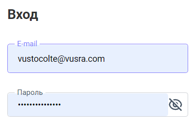 В котором необходимо заполнить строки: E-mail и Пароль. С помощью данного виджета можно видеть правильно был ли ведённый пароль (проверить правильность заполнения данных).