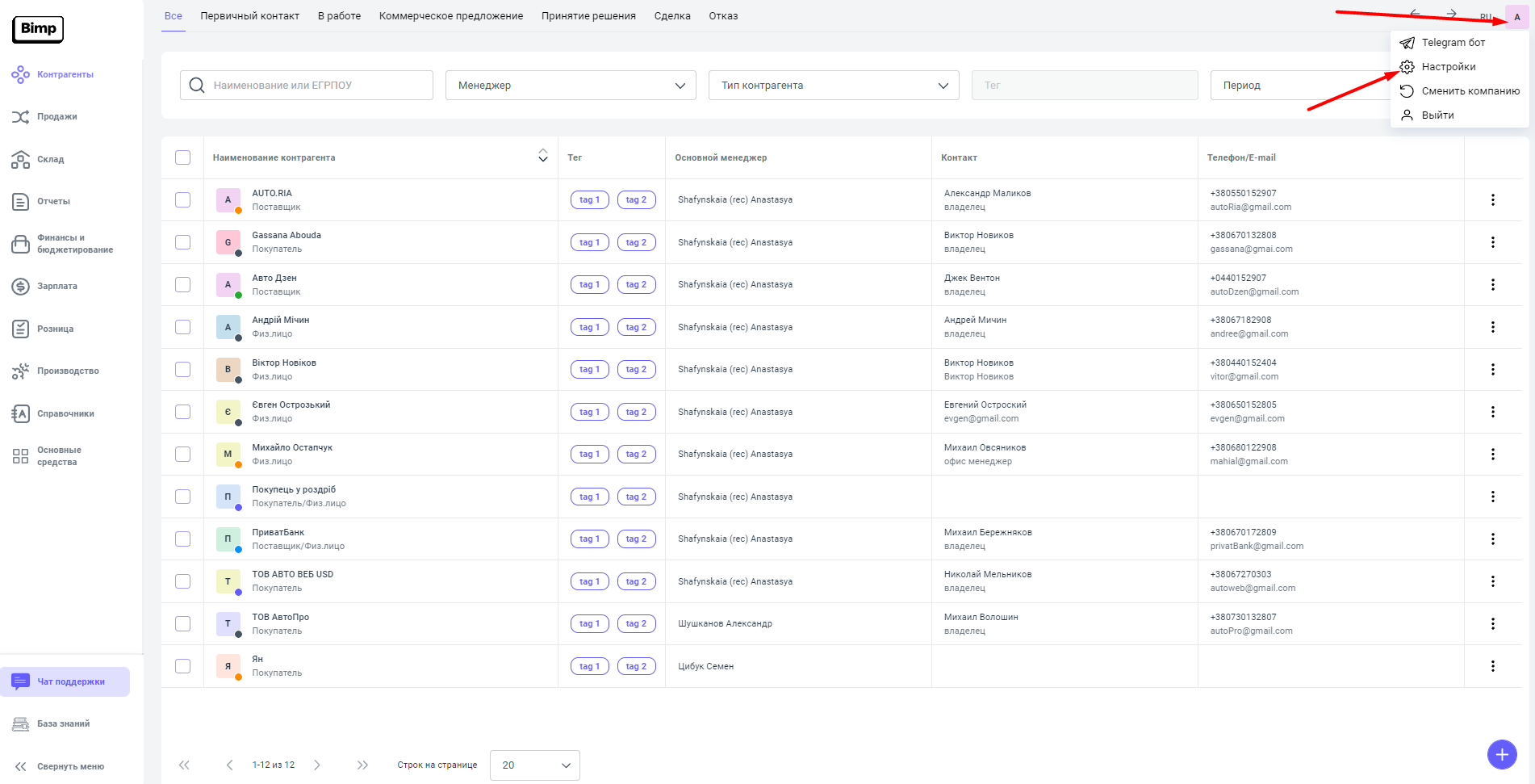 1. Для того, чтобы пригласить/добавить нового пользователя необходимо перейти в Настройки, которые находятся в правом верхнем углу.