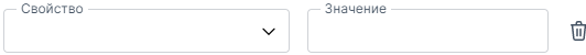 3. В строке Свойство из выпадающего списка выбираем дополнительное поле характеристики, а в строку Значение информацию вносим вручную.