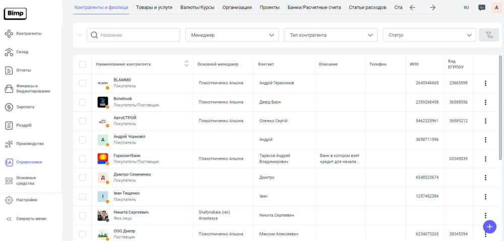 или блок Справочники ➞ раздел Контрагенты и физлица ➞ Карточка контрагента.