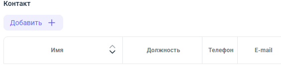 12. В поле Контактные лица карточки в соответствующих столбцах прописываем — ФИО контакта контрагента, должность контакта и мобильный телефон контактного лица, с помощью нажатия кнопки "Добавить".