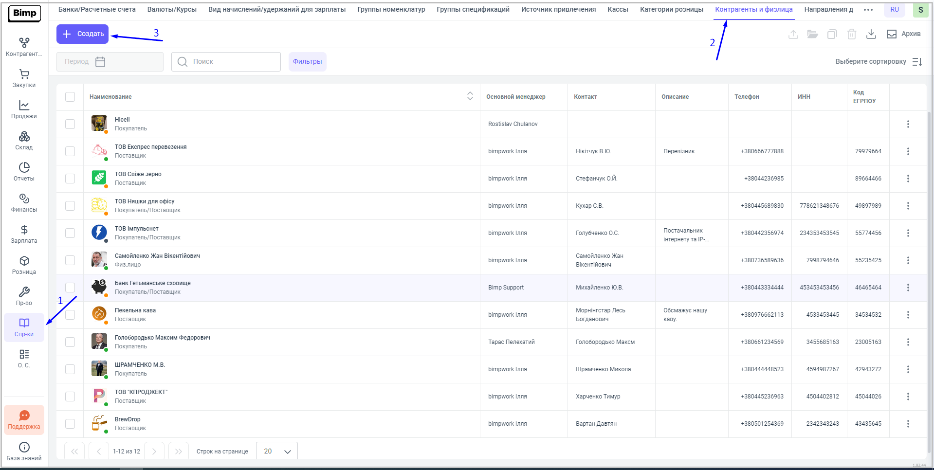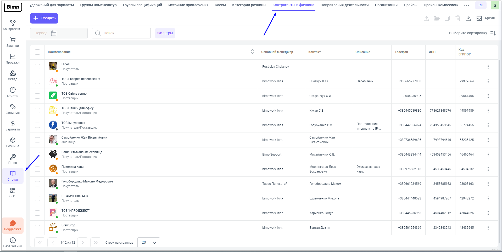Контрагентов, в данный справочник, возможно внести тремя способами — выгрузить контрагентов из 1С (если вы вели учет в этой программе ранее), импортировать с помощью шаблона Ecxel и вручную.