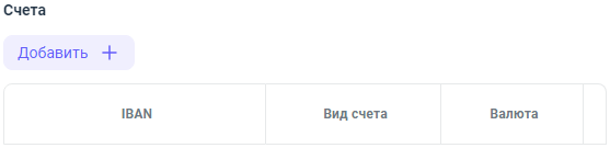 11. Вносим данные в рабочее поле Счета, где прописываем все расчетные счета контрагента с помощью кнопки "Добавить".