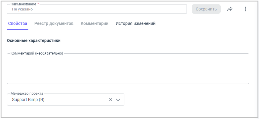 4. После внесения всей информации в карточку проекта, нажимаем на кнопку "Сохранить".