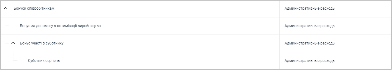 Архитектура справочника Статей затрат позволяет создать иерархию статей затрат. Для примера, создадим иерархию затрат на участие в выставках. Разберем этот процесс пошагово на примере затрат на выплату бонусов "Бонусы работникам".