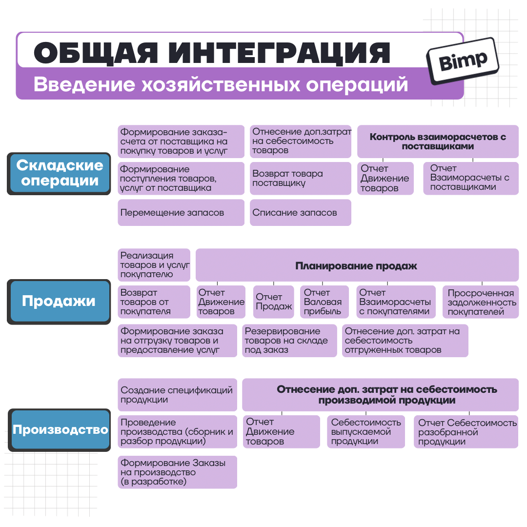 - Отчет "Движение товаров", Отчет "Себестоимость выпущенной продукции", Отчет "Себестоимость разобранной продукции".