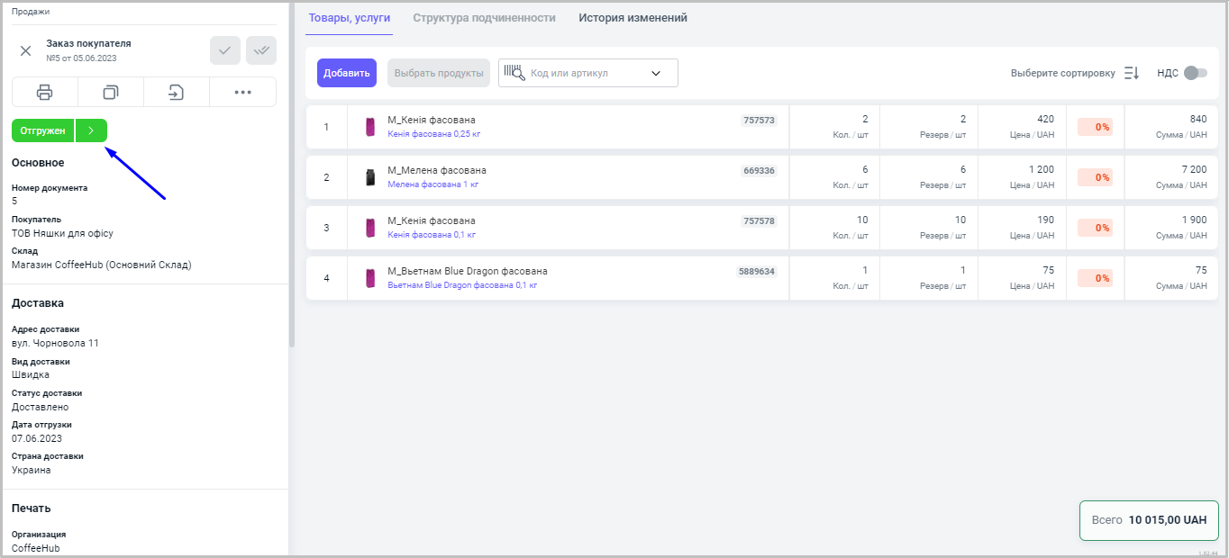 Как провести заказ покупателю?