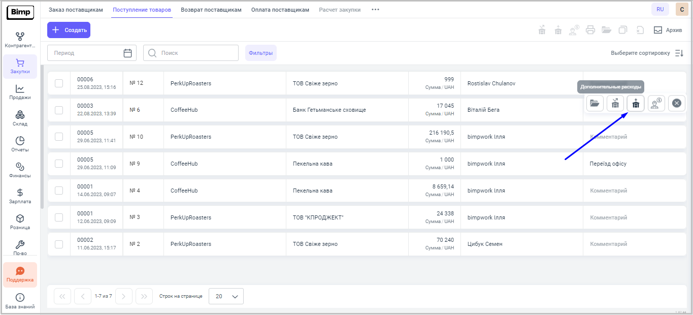 На сервисе Bimp, для того чтобы оформить расходы на поставку товаров, либо другие дополнительные расходы необходимо воспользоваться документом "Дополнительные расходы".