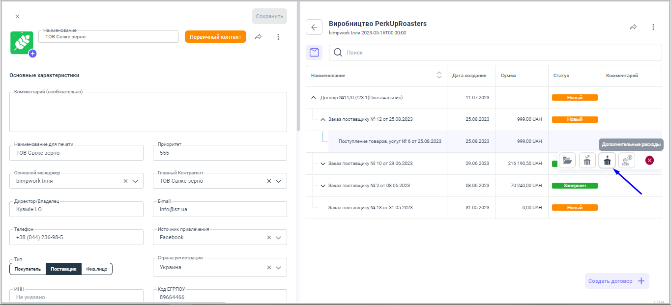 I - Документ "Дополнительные расходы" вы можете создать в блоке Контрагенты выбрав карточку необходимого контрагента с типом — поставщик.