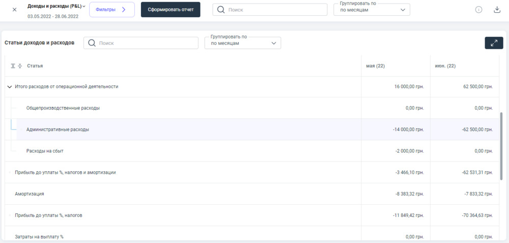 Сумма расхода внесенная в данный документ списывается единожды со счета/кассы предприятия, но в отчетах компании отображается помесячно (за исключением отчета Движение денежных средств) согласно статье указанной в документе.