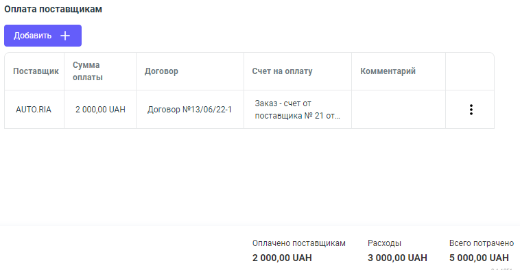 В информационном поле Оплата поставщикам мы указываем поставщика, договор и заказ - счет на основе которого сформировалась задолженность. А сумма долга, у нас автоматически подтянется с выбранного счета.