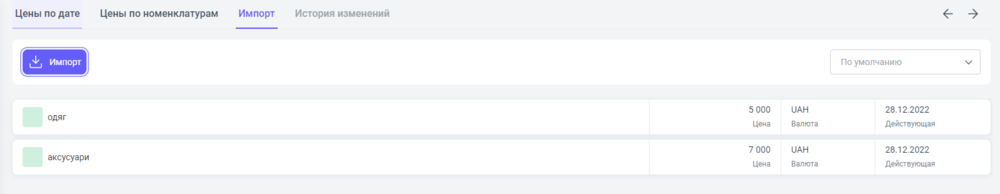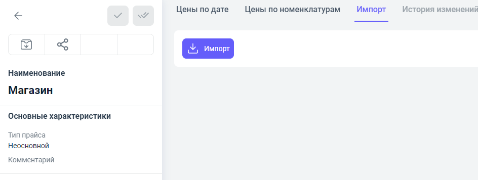 4. Далее, в карточке созданного прайса переходим во вкладку Импорт и нажимаем на кнопку "Импорт".