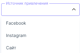 В сервисе по умолчанию создаются три источника привлечения - Facebook, Instagram, Сайт. При необходимости, возможно добавить новые источники в блоке Справочники раздел Источники привлечения.