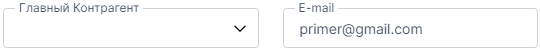 5. Потом, в строке Главный контрагент из выпадающего списка выбираем главного контрагента, а в строку E-mail вписываем электронный адрес контрагент.