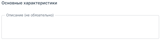 3. В поле Основные характеристики в строке Описание (не обязательно) - вписываем комментарий к контрагенту. Максимальное количество символов - 1000 символов.
