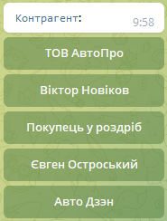 3. Далее, появляется список контрагентов (покупателей), из которого выбираем того, кому будем реализовывать выбранную ранее позицию.