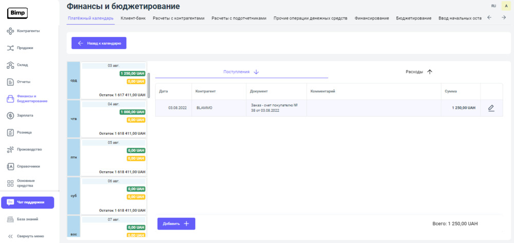 Детальнее, о функциональных возможностях календаря читайте в статье: Основные возможности и функции Платёжного календаря