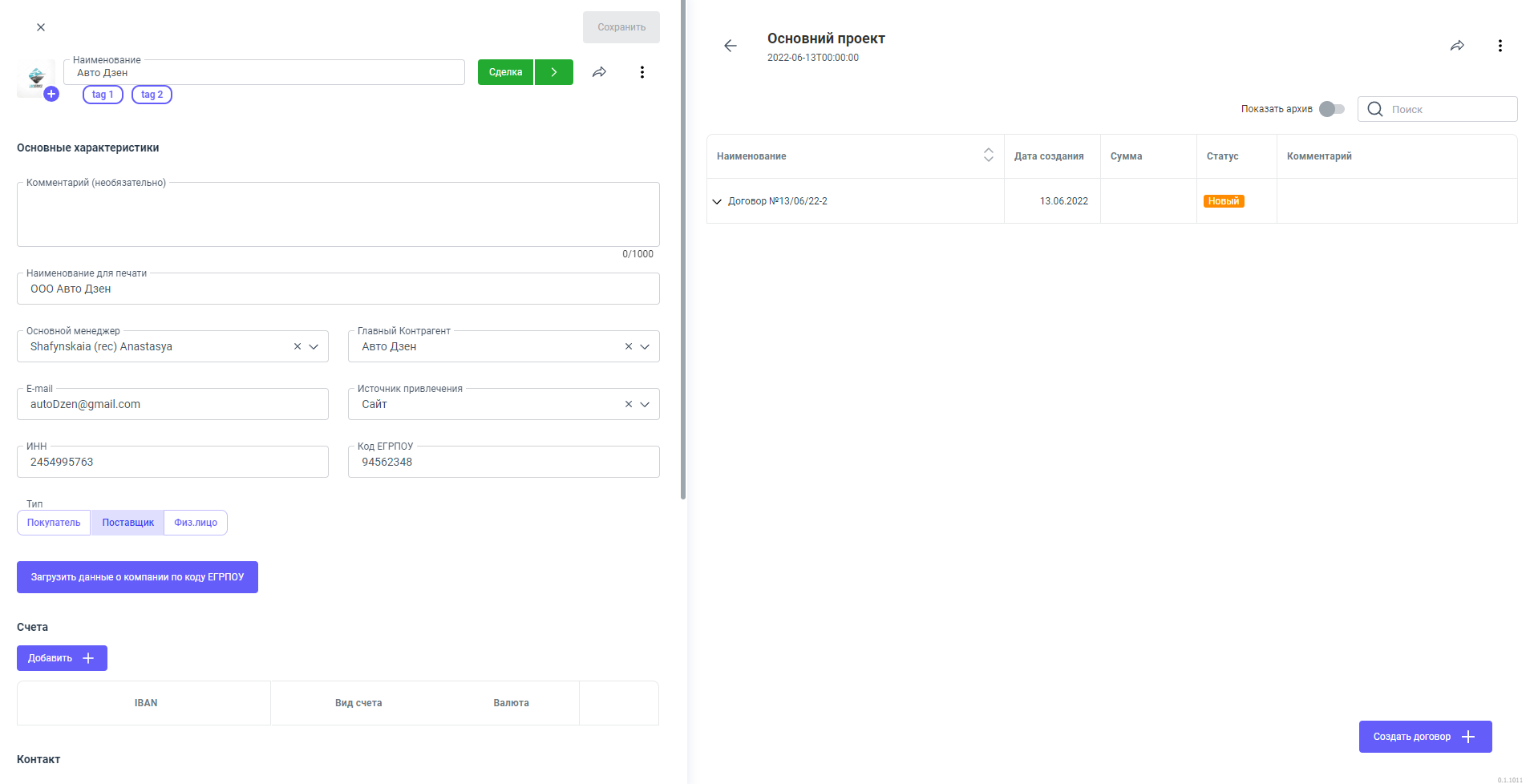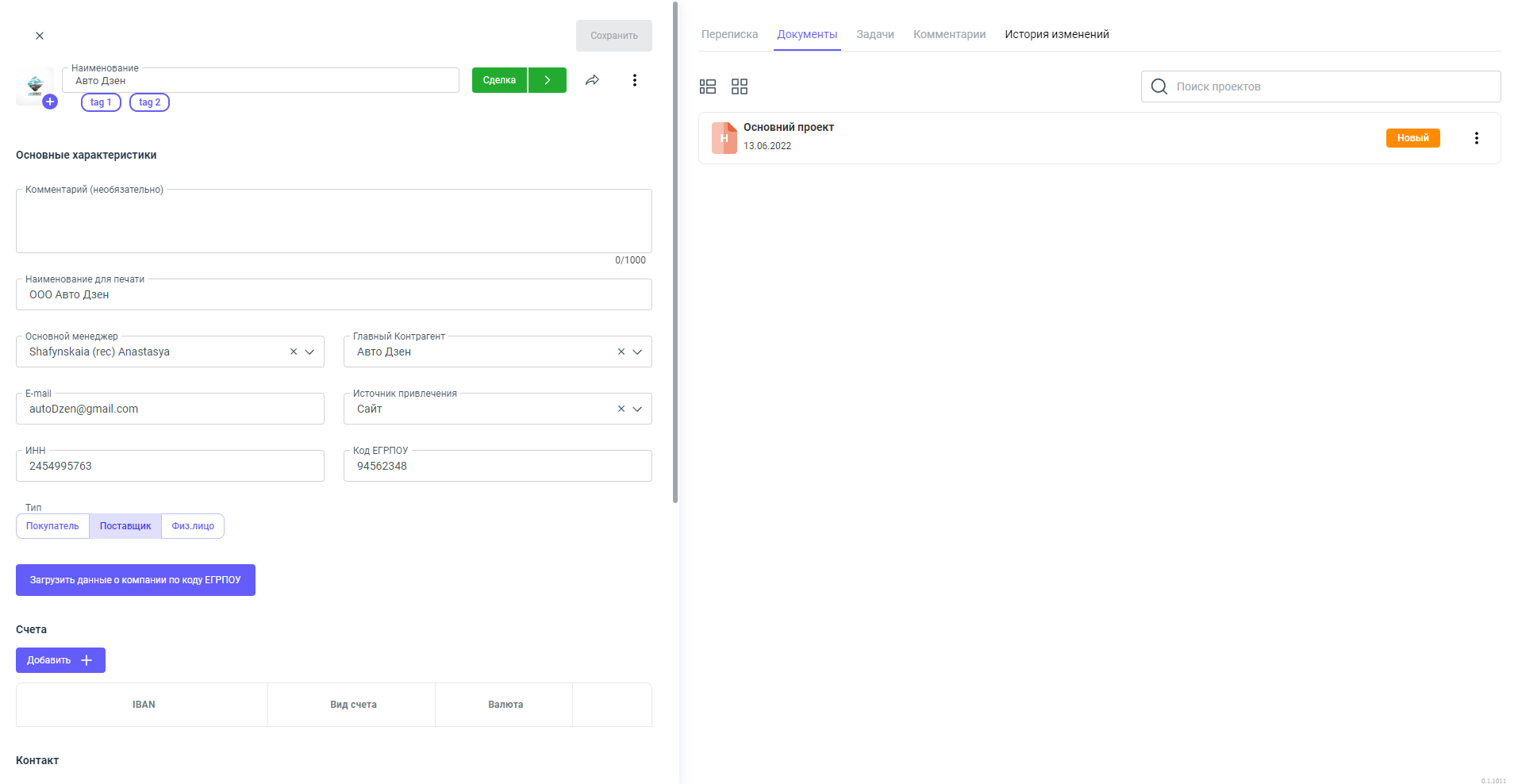 1. Переходим в блок Контрагенты, открываем карточку необходимого нам поставщика.