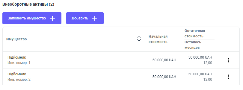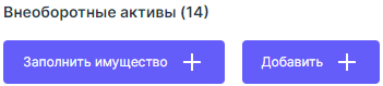 Также, поле имеет две кнопки - "Заполнить имущество +" и "Добавить +".