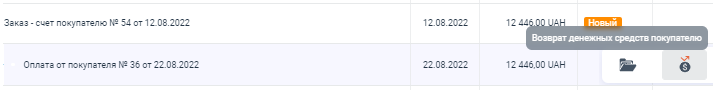 3. Потом, проводим возврат денежных средств, только на прогоночный счет нашей компании,