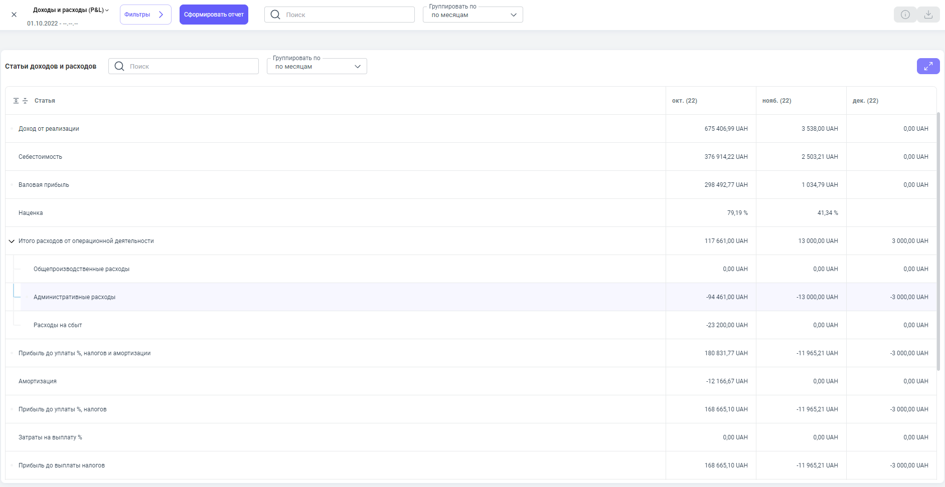 После создания документа "Зарплата", данные с этого документа попадают в отчет — Доходы и расходы.