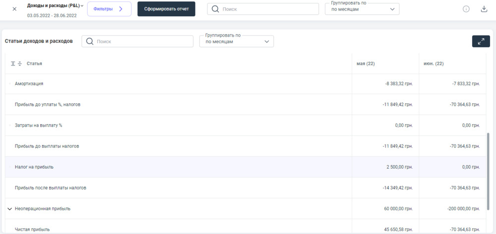 После проведения оплаты по статье расхода — Налог на прибыль данным документом, в отчете мы можем увидеть сумму, проведенную им в строке отчета — Налог на прибыль.