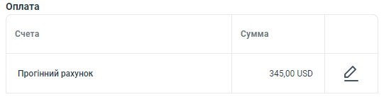 И в поле документа Оплата, указываем наш прогоночный счет компании.