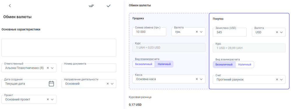 Детальнее о правильном заполнении документа "Обмен валюты" читайте в статье: Создание документа "Обмен валюты"