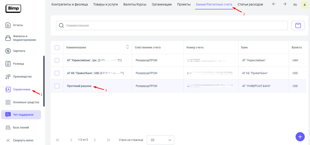 Детальнее о том, как добавить расчетный счет компании, читайте в статье: Справочник Банки/Расчетные счета