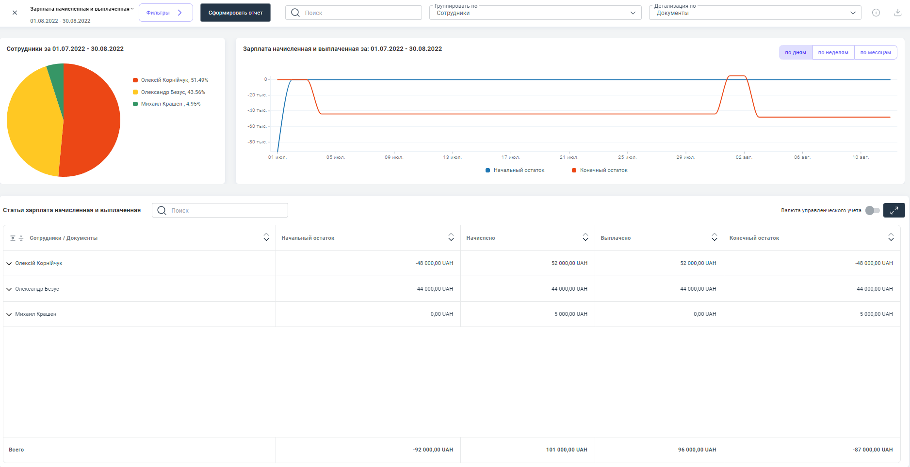 Данный отчет формируется из платежей между вашей компанией и её сотрудниками.