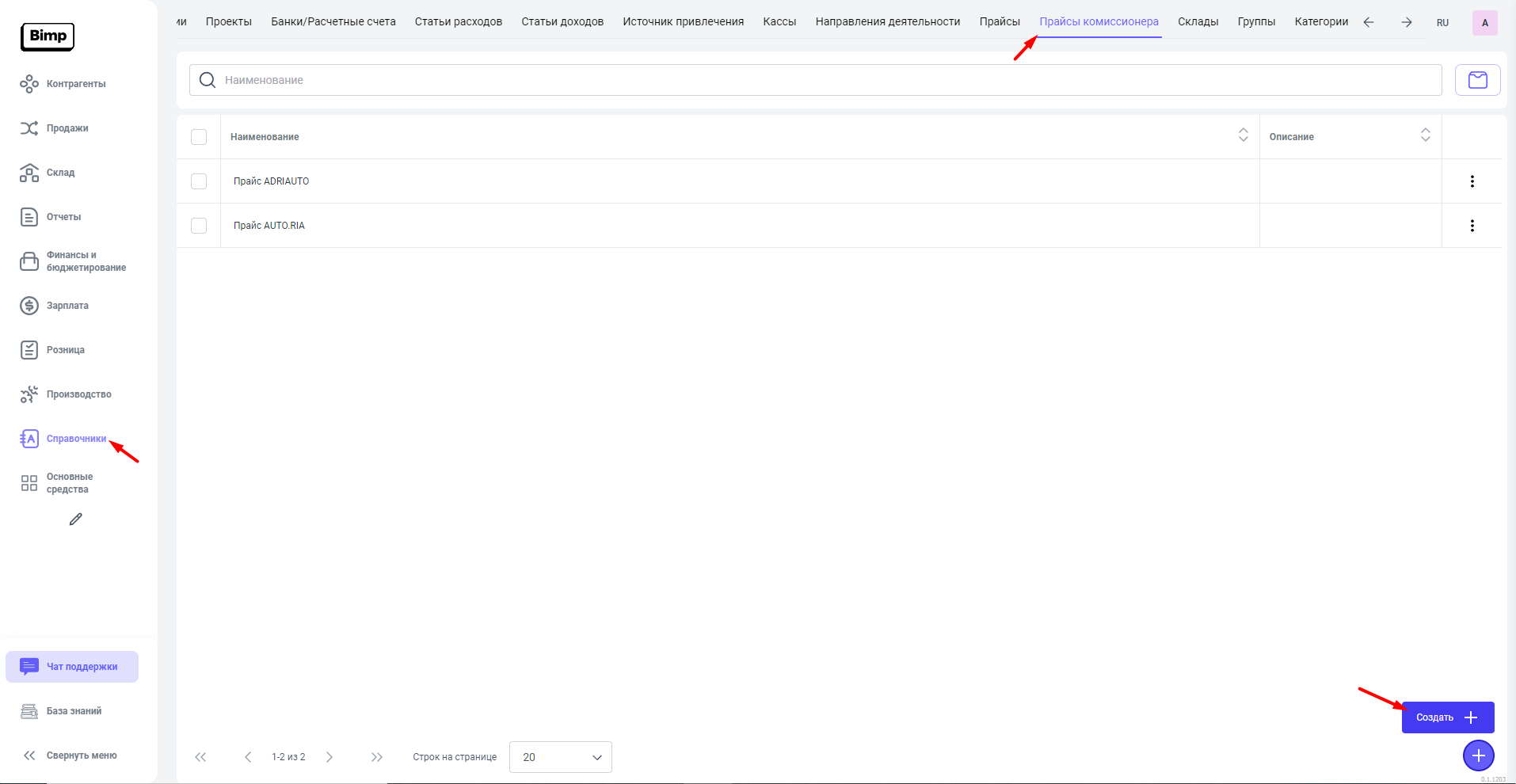 На сервисе Bimp можно вносить прайсы комиссионера, для реализации товара через "дропшипинг", в блоке Справочники раздела Прайс комиссионера. Этот раздел можно заполнить вручную или с помощью шаблона Excel.