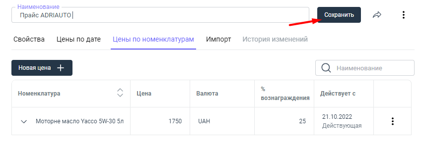 6. После подтверждения товары появляются в карточке прайса комиссионера.