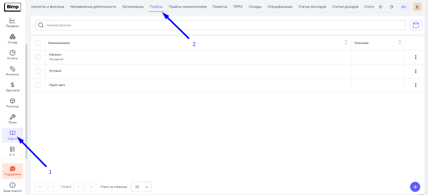 1. Открываем карточку прайса в блоке Справочники, справочник Прайсы.
