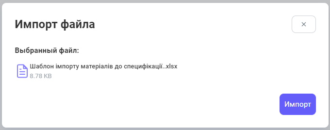 5. Появляется информационная табличка, где мы можем увидеть какой файл загружаем, и убедившись в правильности выбранного файла, нажимаем на кнопку "Импорт".