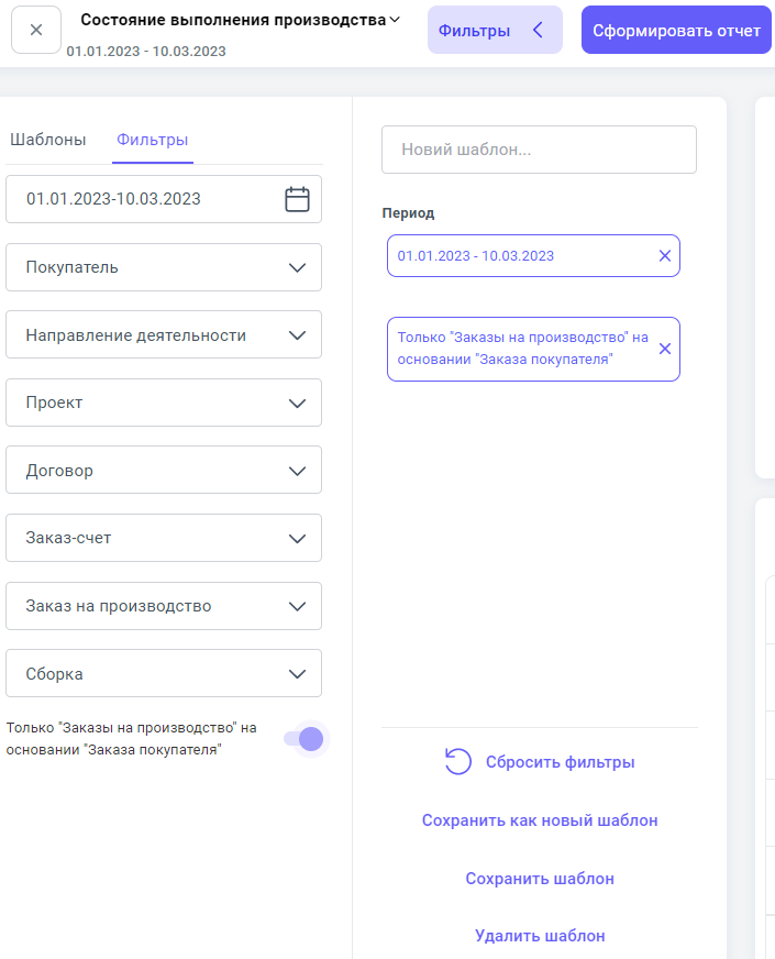 Подробнее о том, как пользоваться шаблонами в отчетах читайте в статье: Сохранение шаблонов в отчетах