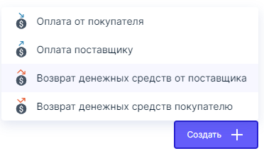 2. Из выпадающего списка выбираем строку Возврат денежных средств от поставщика.