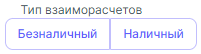 В строке Тип взаиморасчетовБезналичный или Наличный. Необходимо, нажать на кнопку соответствующею тому, на какой расчетный счет или кассу вы хотите получить оплату.