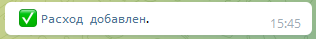 5. Когда мы оставили комментарий или нажали кнопку "Нет", появляется информационное окно об успешно созданном расходе компании.