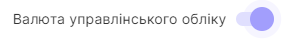 - Перемикач "Валюта управлінського обліку" у звітах;