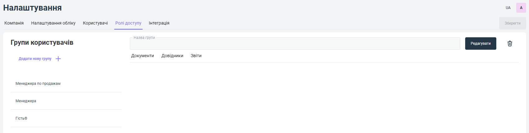 Також є вкладка Ролі доступу для заповнення ролей та прав для кожного окремого користувача.