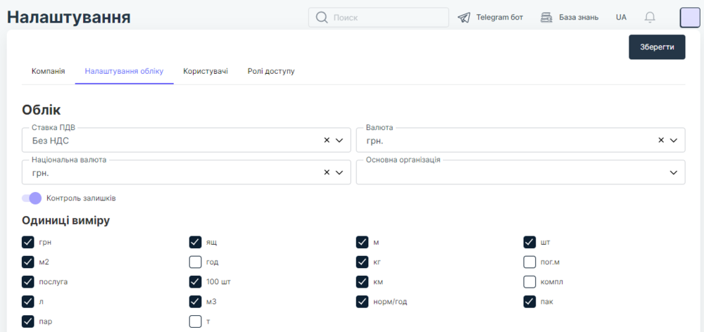 - Одиниці виміру - вказуються одиниці виміру з якими працює Ваша компанія.
