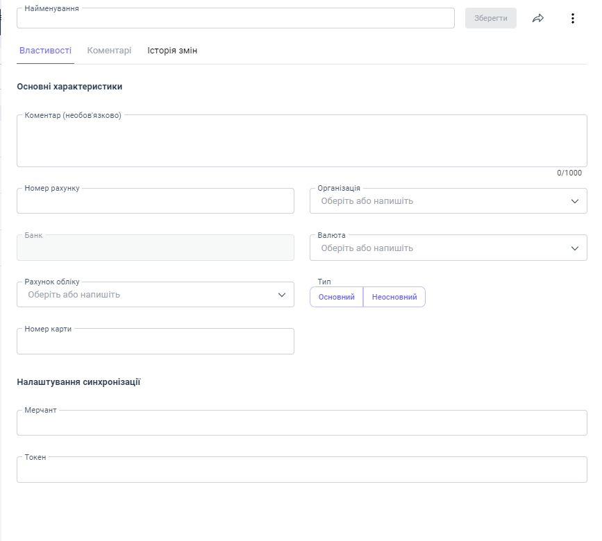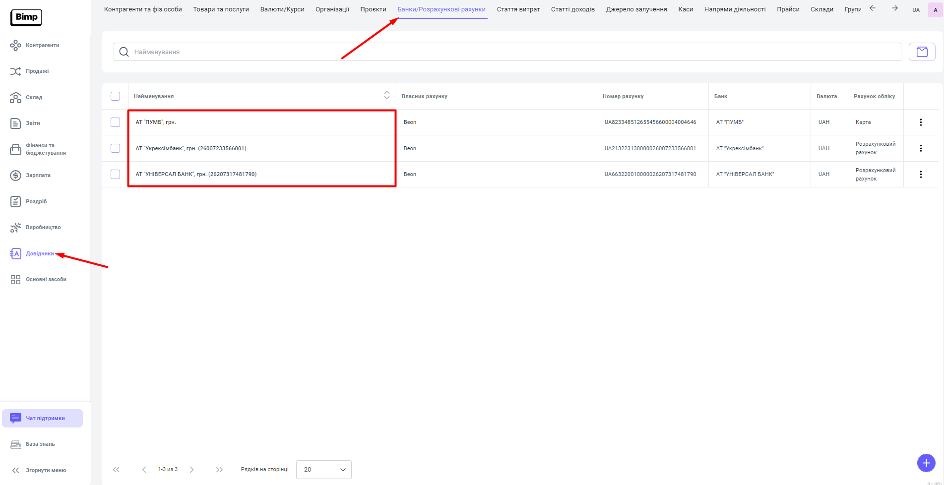 Для того щоб підвантажити виписку з банку спочатку необхідно заповнити такі дані в блоці Довідники як: Банки/розрахункові рахунки, внести розрахунковий рахунок/картку, вказавши всю інформацію в рядках заповнення.