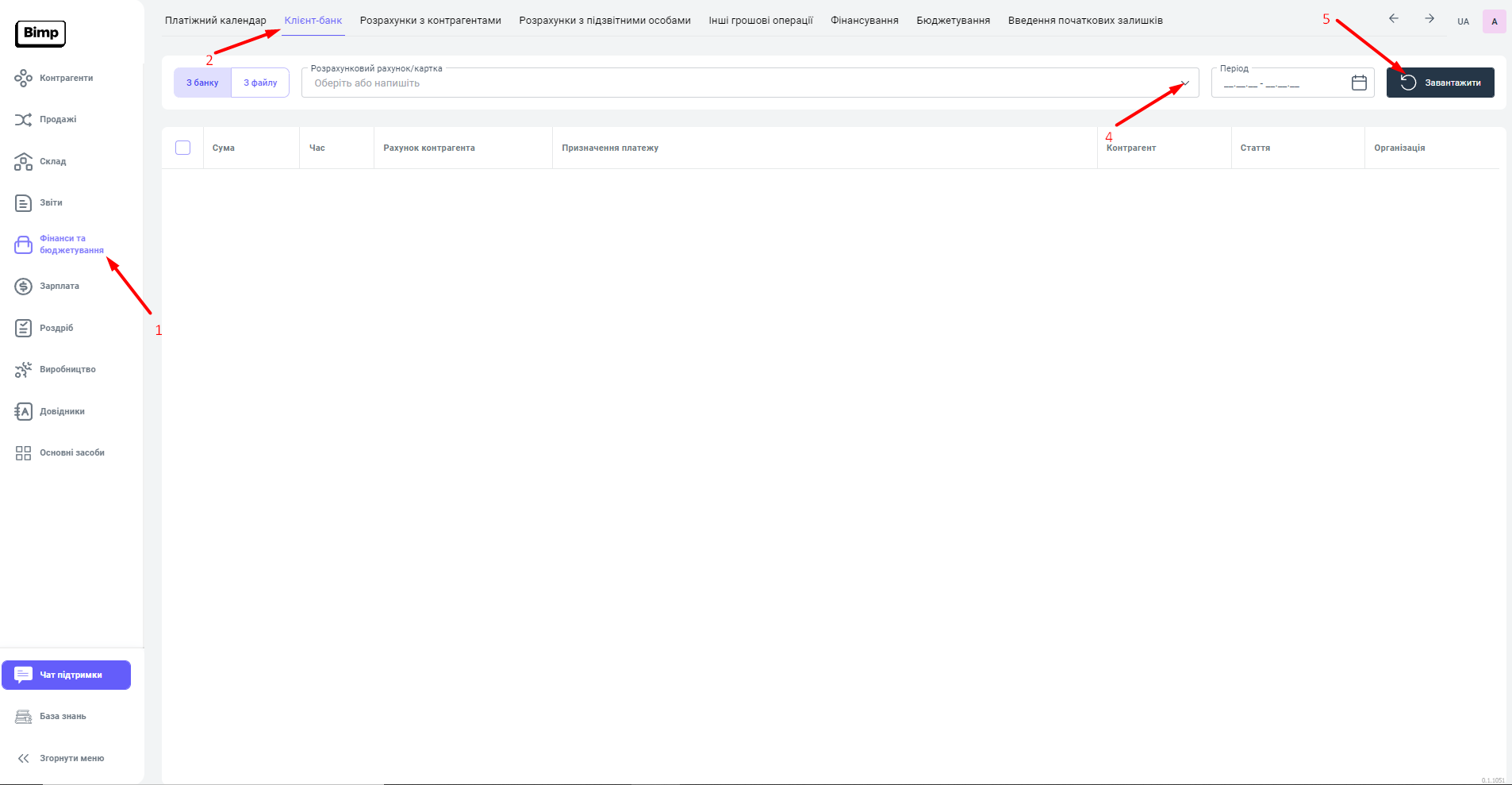 Переходимо в блок Фінанси та бюджетування, розділ Клієнт-банк.