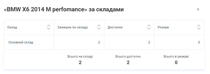 За допомогою натискання на необхідний товар можна побачити скільки даного товару знаходиться на кожному зі складів.