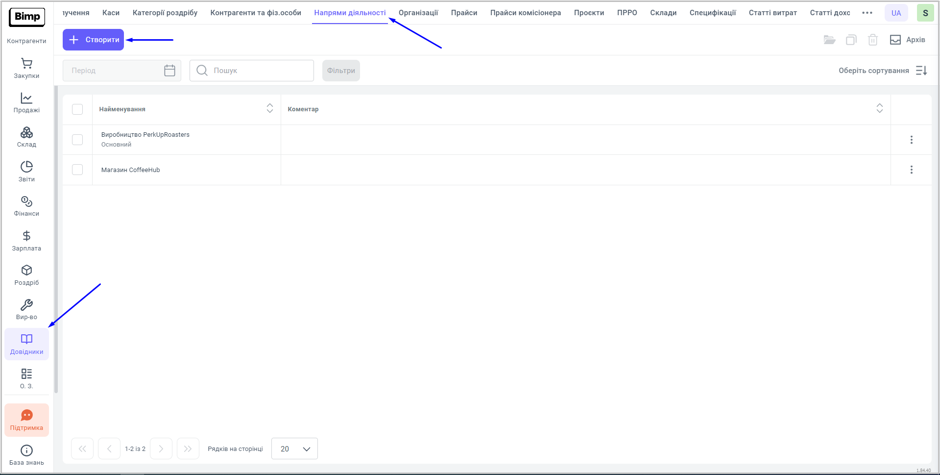 Довідник необхідний для відображення та створення напрямків діяльності вашої компанії.