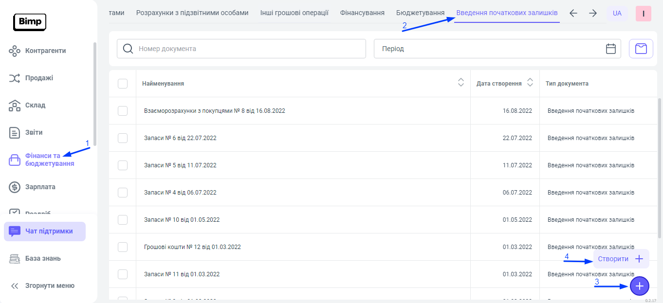 Цей документ знаходиться в блоці Фінанси та бюджетування в розділі Введення початкових залишків.