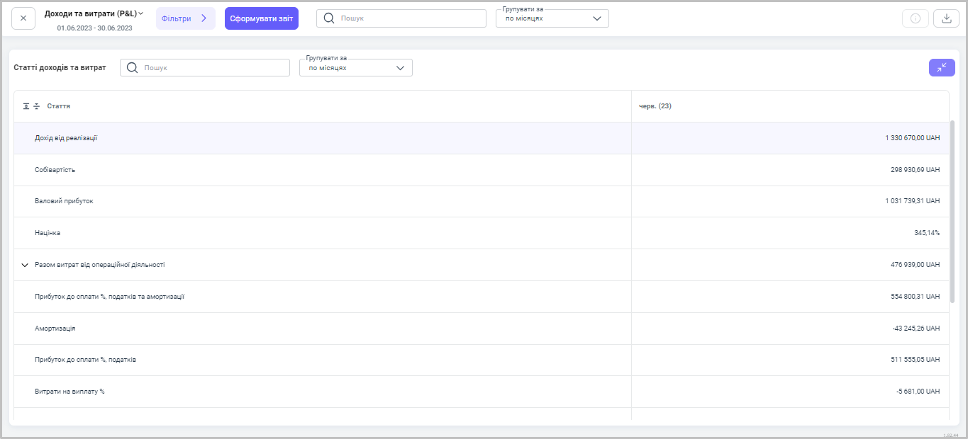 Також, дані з документів потрапляють до звіту - Доходи та витрати.