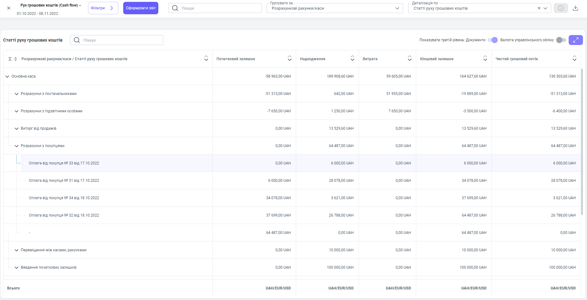 Також дані з документів потрапляють у звіт Рух грошових коштів.