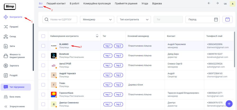 Документ "Повернення грошових коштів покупцю" ви можете створити в блоці Контрагенти, вибравши картку необхідного контрагента з типом — покупець.