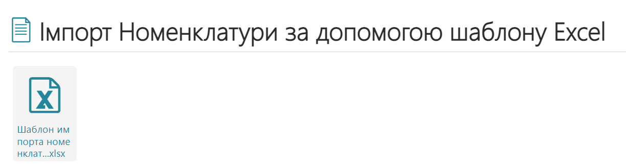 Детальніше, про те як підвантажити шаблон, читайте в статті: Імпорт номенклатур за допомогою шаблону Excel